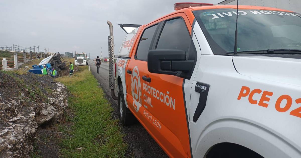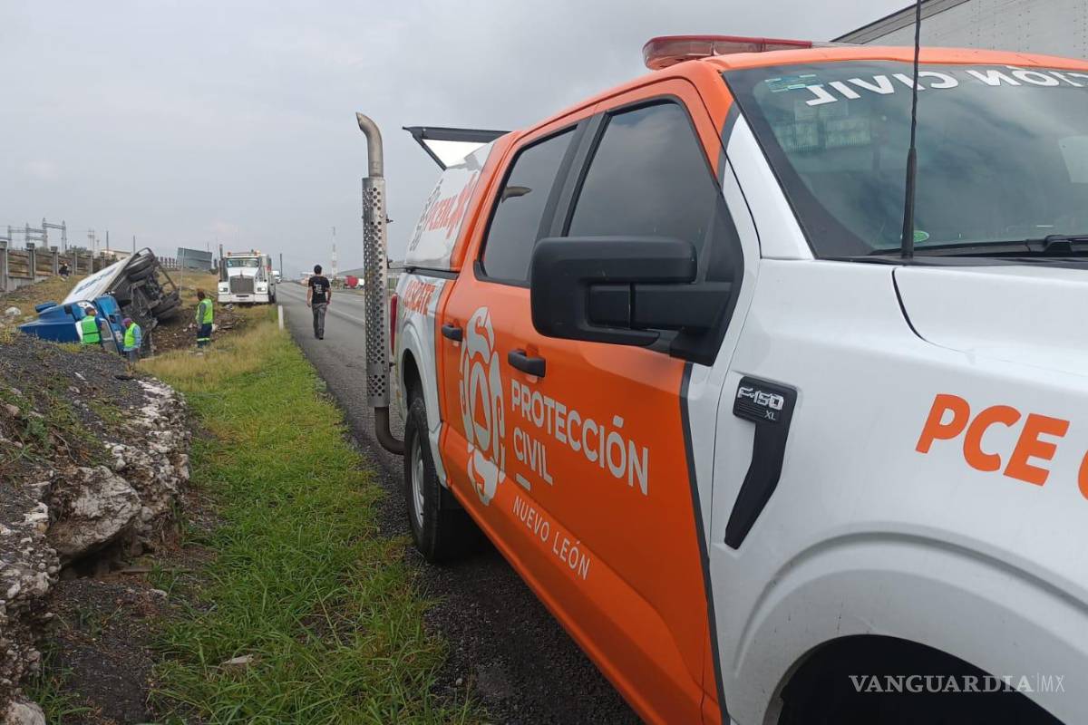 ¿Vas a viajar? ¡Cuidado! Reportan volcadura de camión en carretera Monterrey-Saltillo