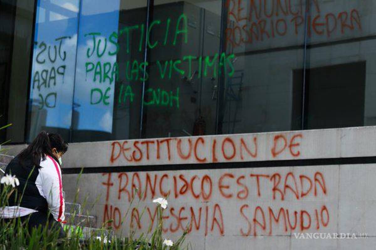 Las víctimas y sus familiares que se manifestaron pidieron la destitución de Francisco Estrada Correa, secretario Ejecutivo de la CNDH; de Paolo Giuseppe Martínez, director de la Primera Visitaduría de la dependencia; además de Bianca Trujillo, del área de Asuntos Jurídicos de la Comisión.
