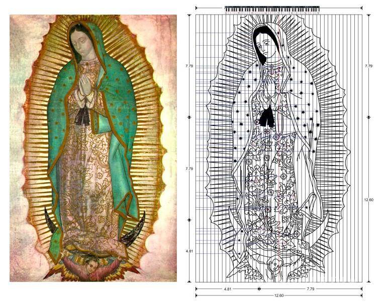 El investigador diseñó un modelo a partir de un rectángulo áureo donde descubrió que en efecto, el manto y vestido de la Virgen de Guadalupe guardaban una melodía.