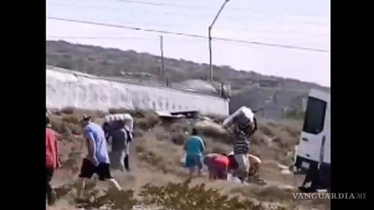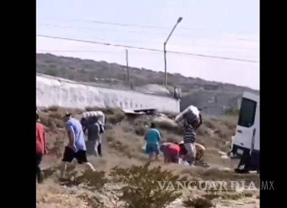Volcó un camión cargado con pacas de ropa y desata la rapiña en Mina, NL
