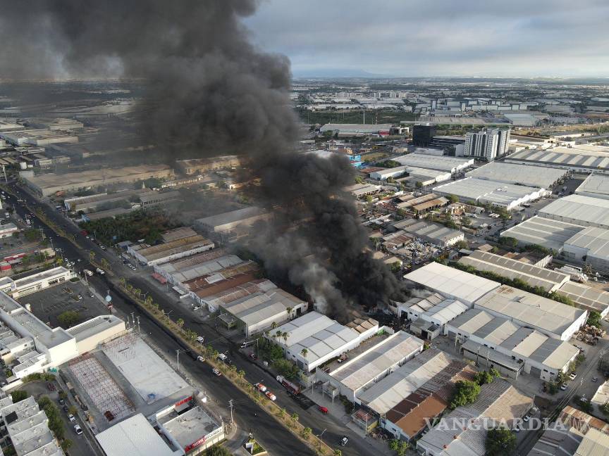 Voraz incendio arrasa con bodegas industriales en Apodaca, Nuevo León; no se reportan heridos hasta el momento