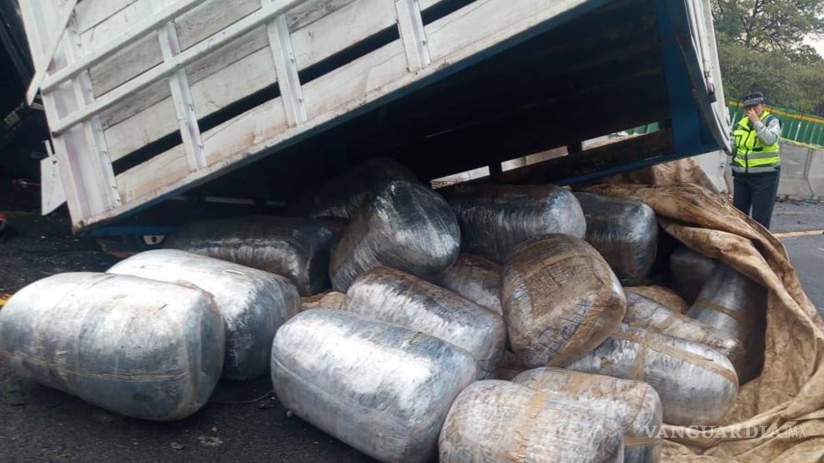 Vuelca camioneta con 500 kilos de marihuana en la México-Toluca; el conductor escapó
