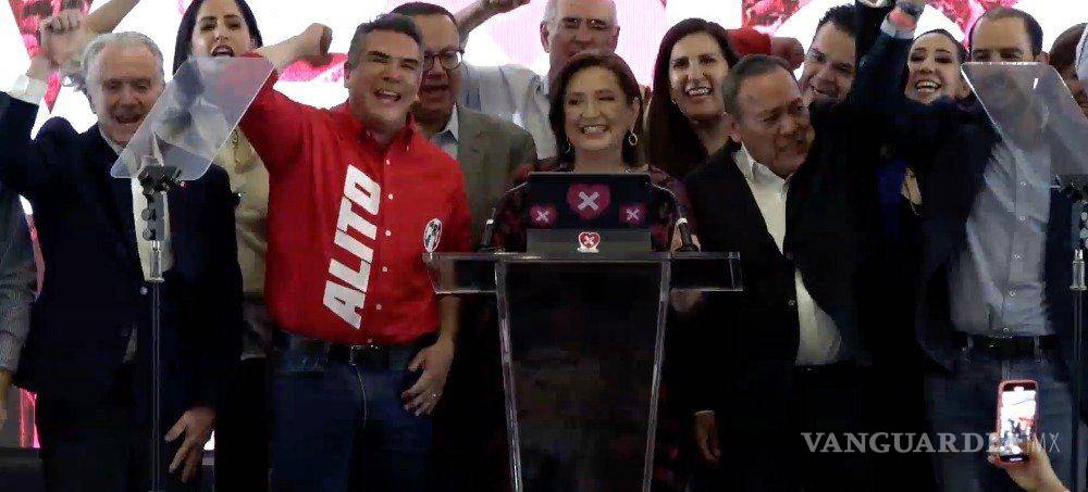 En medio de gritos de “¡Presidenta, presidenta!” la abanderada de PAN-PRI-PRD dijo: “Yo les había dicho desde hace meses que íbamos a ganar estas elecciones a pesar de todas las trampas, a pesar de las mentiras, a pesar del abuso de poder y de sus millones de pesos desviados para ayudar a su candidata”, mencionó sin presentar márgenes ni números.