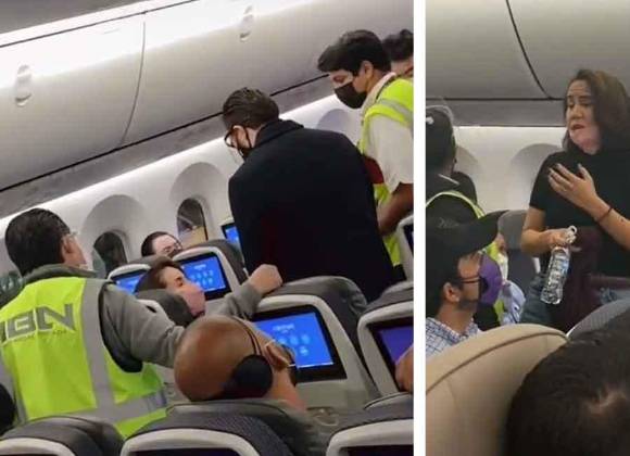También se puede observar cómo la mujer intenta explicarles algo, sin embargo, al parecer no tener la razón le terminan pidiendo que descienda del avión.