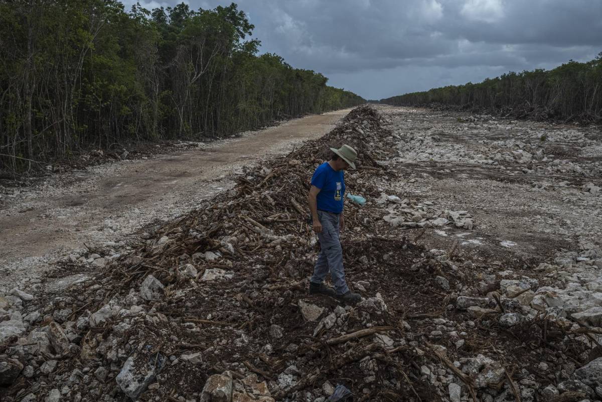 PLAYA DEL CARMEN, Q. ROO.- A lo largo de una franja de selva recién cortada, había amontonados troncos de árboles retorcidos en pilas altas, como miles de cerillas usadas que se extendían hasta donde alcanza la vista. Este camino deforestado en el sur de México fue despejado recientemente para construir un ambicioso proyecto gubernamental: el Tren Maya.