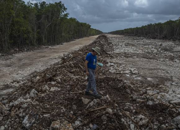 La parte más polémica del trazado del tren, el Tramo 5, unirá las famosas playas de arena blanca que se extienden desde Cancún hasta Tulum en la península de Yucatán. Para minimizar la deforestación, la construcción se planeó inicialmente a lo largo de una carretera. Pero ahora serpenteará a través de la segunda selva más grande de América, habitada por jaguares en peligro de extinción. Las vías se extenderán sobre el río subterráneo más largo del mundo y sobre cientos de cuevas inexploradas que se ha descubierto que albergan ruinas antiguas de la civilización maya que le da nombre al ferrocarril.