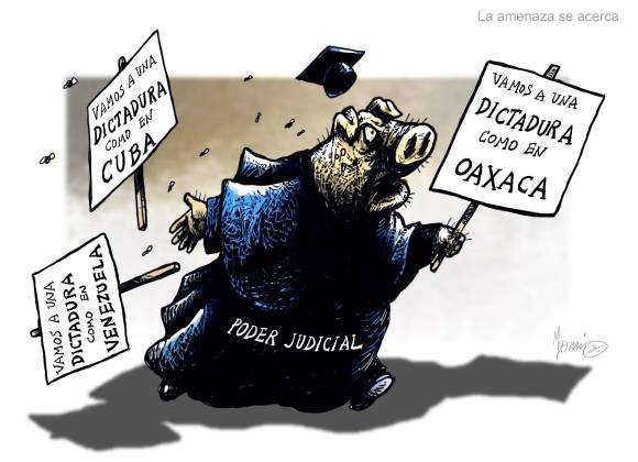 Diversas voces de la oposición, así como analistas, han advertido que México avanza hacia una dictadura, sobre todo tras la colonización del Poder Judicial por parte del oficialismo: una vez erradicada la división de poderes, advierten, el poder lo concentra el Ejecutivo.