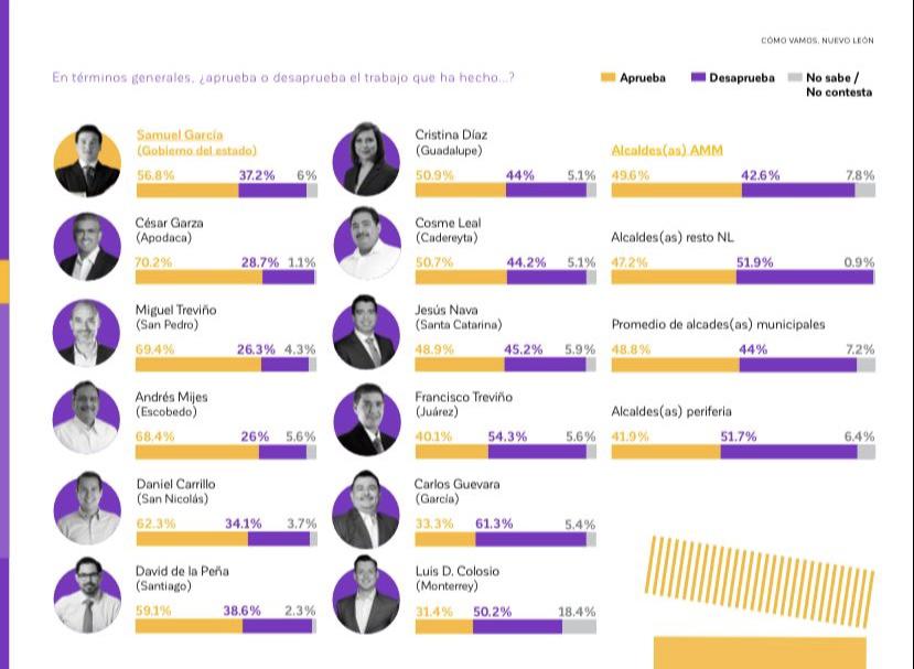 Los números del levantamiento realizado entre el 28 de agosto y el 17 de octubre 2023 por esta organización apartidista, revelan que los votantes regios y santacatarinenses aprueban cada vez menos las gestiones de los emecistas Luis Donaldo Colosio Riojas y de Jesús Nava.