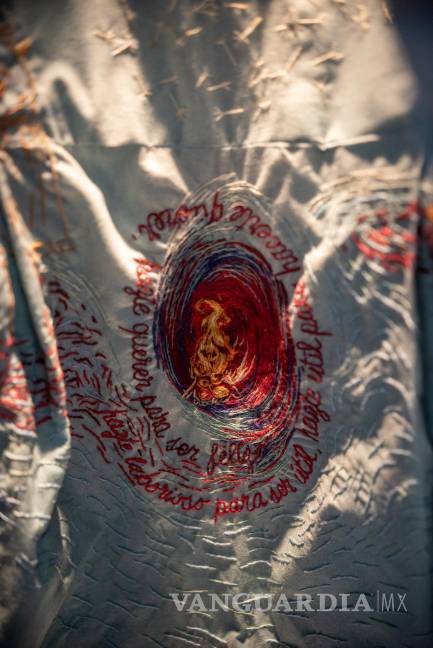 Durante 2021 y 2022 se fincó un largo, hermoso y contundente proyecto donde bordados individuales fueron unidos entre sí, dando lugar a un gran manto que determinaba el fin de un duelo por fin vivido, y vio la luz a manera de exposición a finales de 2020, en donde también se mostraron objetos y cartas pertenecientes a las familias de los y las obreras, así como un vestido de niña intervenido por Pamela. Esta pieza pensada desde la individualidad, es un vestido abierto (o herido) intervenido por dentro con bordados de niñas jugando, con la intensión de sanar aquella memoria familiar de sus mujeres que no tuvieron infancia por trabajar en la fábrica desde temprana edad.