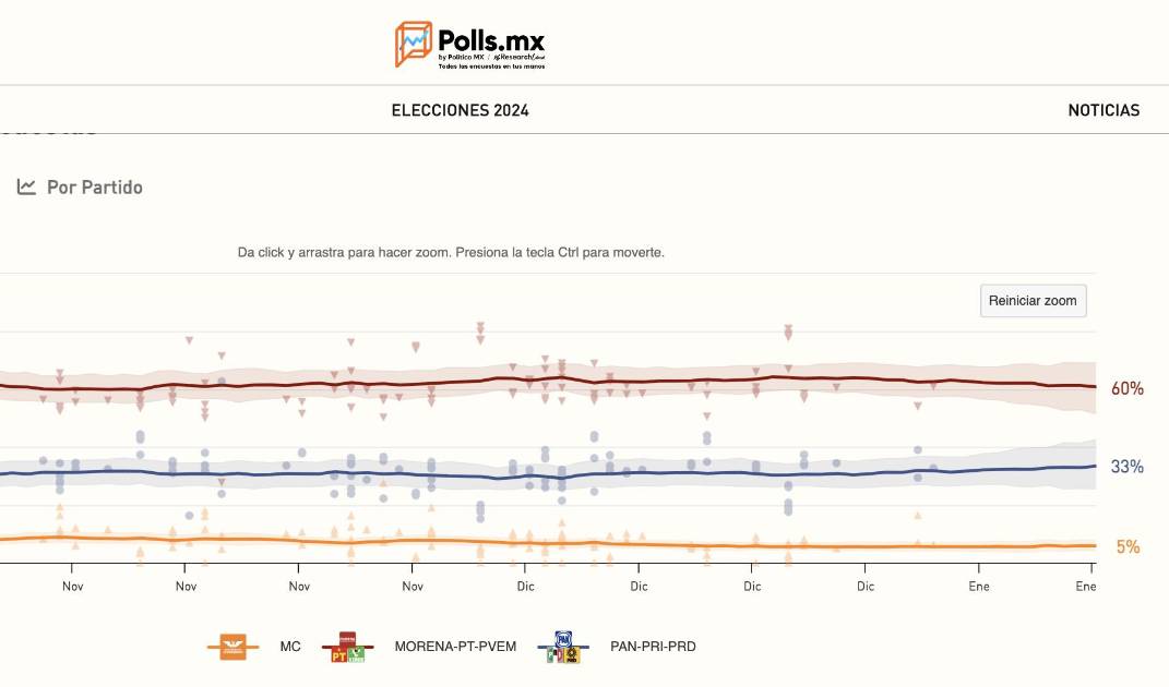 El próximo 18 de enero, es decir, en menos de dos semanas, concluirá la simulación de precampañas de los dos principales polos electorales a enfrentarse en las urnas el próximo mes de junio... y, al decir por el comportamiento de las gráficas de las encuestas, no ha pasado absolutamente nada en las últimas semanas... ni en los últimos meses.