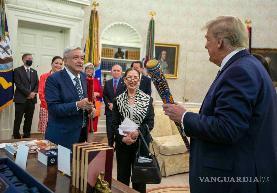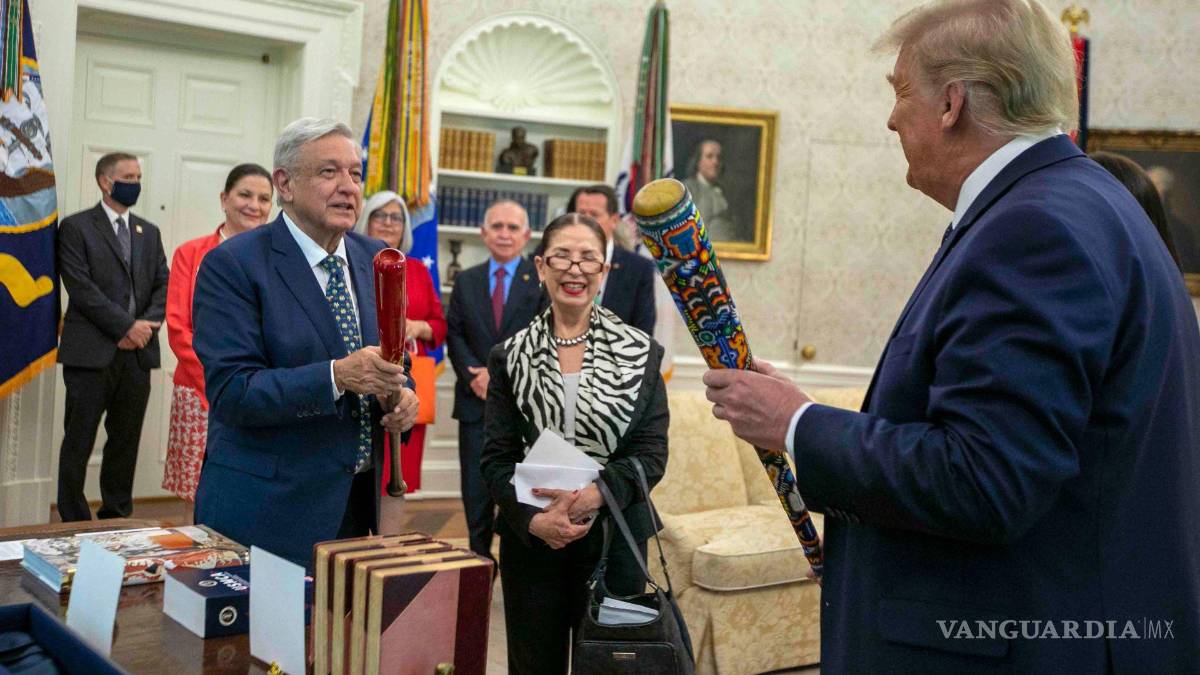 Los que estaban ahí no podían creerlo. Eran como dos amigos, relajados, matando el tiempo, conversando sin prisa sobre beisbol. Estaban en la Oficina Oval de la Casa Blanca. Era 8 de julio del 2020. Los presidentes Donald Trump y Andrés Manuel López Obrador acababan de intercambiar regalos. AMLO le llevó a Trump un bat decorado con arte huichol. Y Trump le tenía un bat rojo de la famosa marca Louisville.