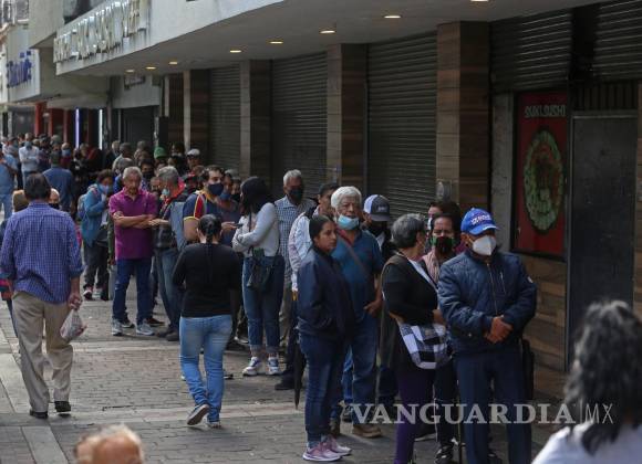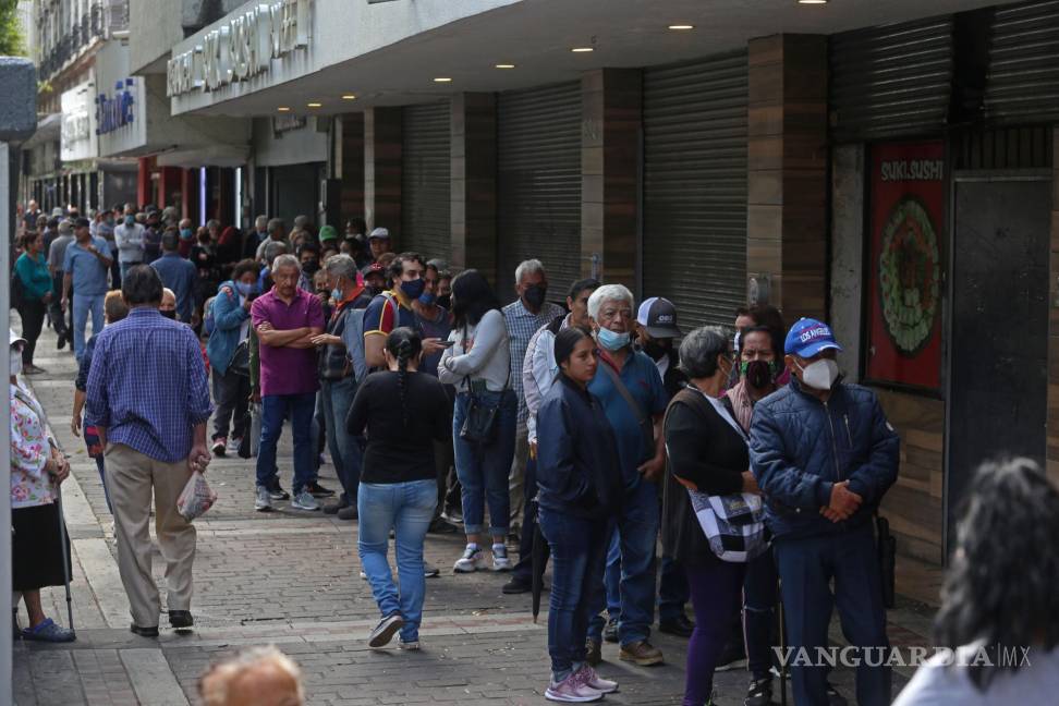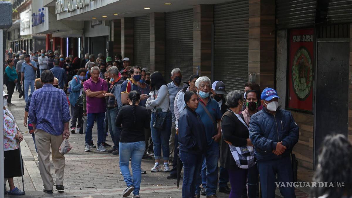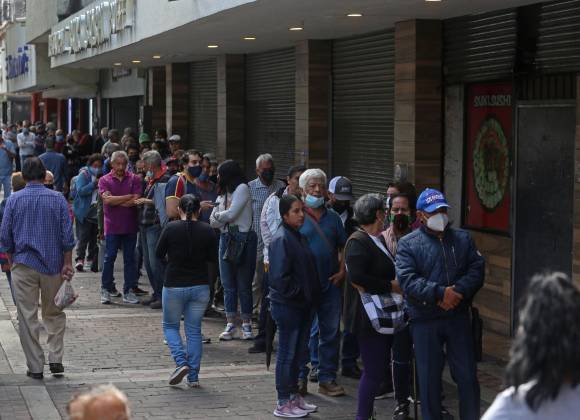 Largas filas de cobro de la pensión en México
