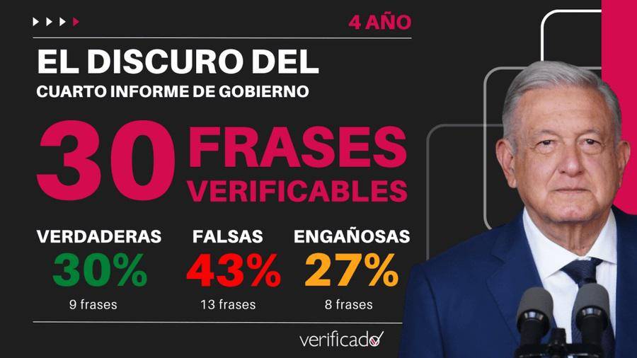 En un discurso más enfocado en compartir promesas y proyectos a futuro que en presentar datos concretos de estos primeros cuatro años de administración, encontramos 30 frases factuales en el mensaje del #InformeDeGobierno de @lopezobrador_ https://acortar.link/bwzHb7