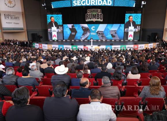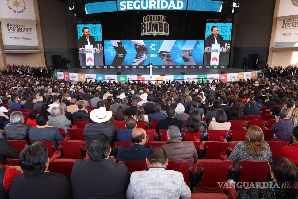 Era el minuto 38 y Manolo cerraba su informe con estas palabras: “¡Qué Dios Bendiga a Coahuila y a nuestra gente! Aquí todos vamos pa’ delante, a paso de gigante” (vítores desde mero atrás).