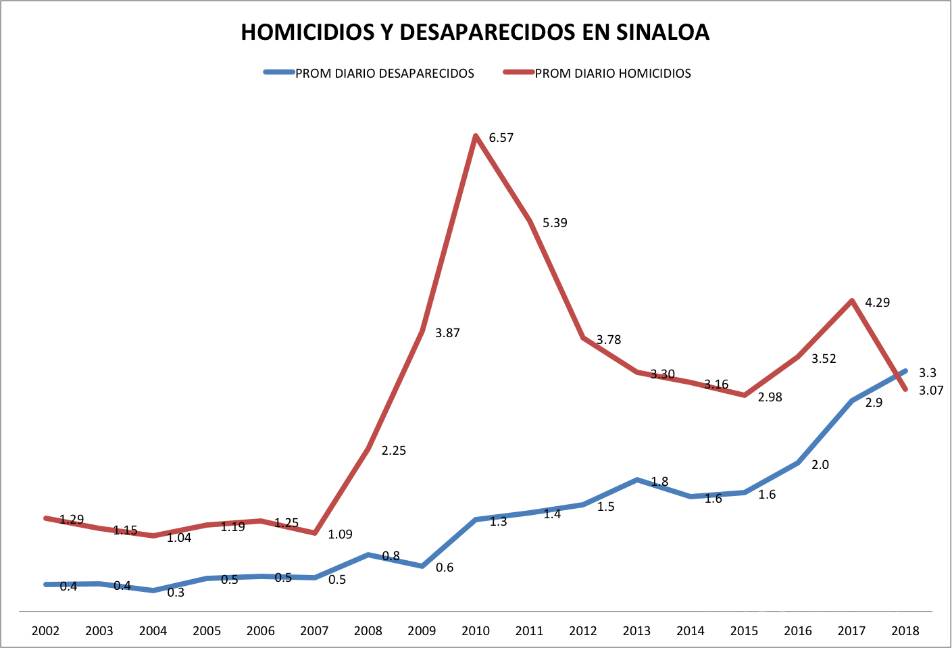 Es decir, que no podemos seguir diagnosticando al crimen organizado sinaloense con las mismas premisas de hace 30 años. El problema que ahora enfrentamos es diferente y sus dinámicas de violencia también. El homicidio es la más poderosa de esas dinámicas y, si bien hay que reconocer su disminución (-28%, 2018), hay que atender otros delitos de igual o mayor impacto en el tejido social como la desaparición de personas (+13.9 por ciento, 2018). Un delito silencioso que impacta menos en la percepción de violencia de una región, pero que genera un profundo daño social.