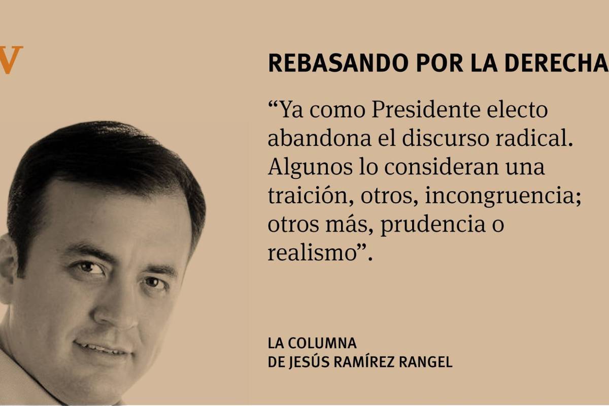 Ya como Presidente electo abandona el discurso radical. Algunos lo consideran una traición, otros, incongruencia; otros más, prudencia o realismo. Sea lo que fuere, se percibe un claro desplazamiento hacia el centro del espectro político e ideológico. Claras muestras de ello son sus nombramientos para el Banco de México, la Unidad de Inteligencia