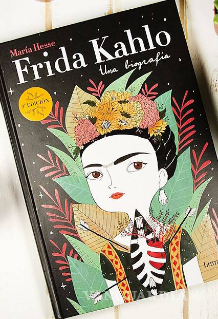 Antes de su llegada a México, muchos ya queríamos tener este libro: "Frida Kahlo. Una biografía". Contada en primera persona de forma casi mimética, con una voz que resuena como un manifiesto cuyo tono evoca la famosa frase de Frida: “me pinto a mí misma porque soy a quien mejor conozco”, el impresionante talento de la ilustradora María Hesse (Huelva, 1982) aporta una obra alegre y luminosa a la abundante bibliografía y productos, a veces nauseabundos, sobre la pintora mexicana más representativa de la historia. El tren turístico de la Kahlo es muy concurrido, nada barato y muchas veces no te dejan usar ni lentes ni sombrero; pero en esta obra, perfecta en muchos sentidos, incluso en lo económico (en España se publicó la edición de pasta dura y para México una versión en rústica que no demerita a la original), la autora sevillana, que ha trabajado en la realización de distintos libros de texto y ha expuesto en diversas galerías, demuestra su capacidad para enfrentar con pasión un reto de intérprete, donde nos invita a leer la vida de Frida Kahlo de forma más emotiva: “Como ella en sus cuadros habla de sus sensaciones, de sus emociones, de sus sentimientos, me hacía contar la historia desde sus sentimientos o desde lo que a mí me parecía que ella pudiera estar sintiendo en ese momento de su vida”.