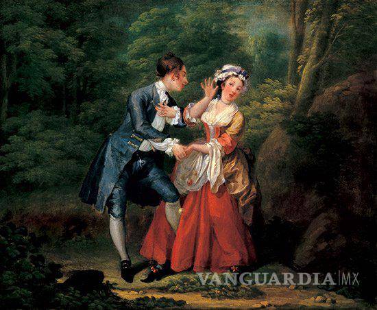 Déjame mostrarte estos dos cuadros de William Hogarth. Los pintó, con intención netamente pornográfica, entre 1730 y 1731. Muestran dos momentos separados por breve tiempo, pero por mucha acción. En el primero, un joven se aplica a la tarea de seducir a una muchacha que sólo en apariencia se muestra reticente. Los dos están de pie, en un umbroso bosque. Él tiene la mano sobre el corazón, como jurando amor, y ella lo detiene con gesto de rechazo. Sin embargo, la chica tiene las piernas ligeramente abiertas, como en invitación, y el galán ha deslizado entre ellas una de las suyas, en adelanto de lo que luego habrá de deslizar.