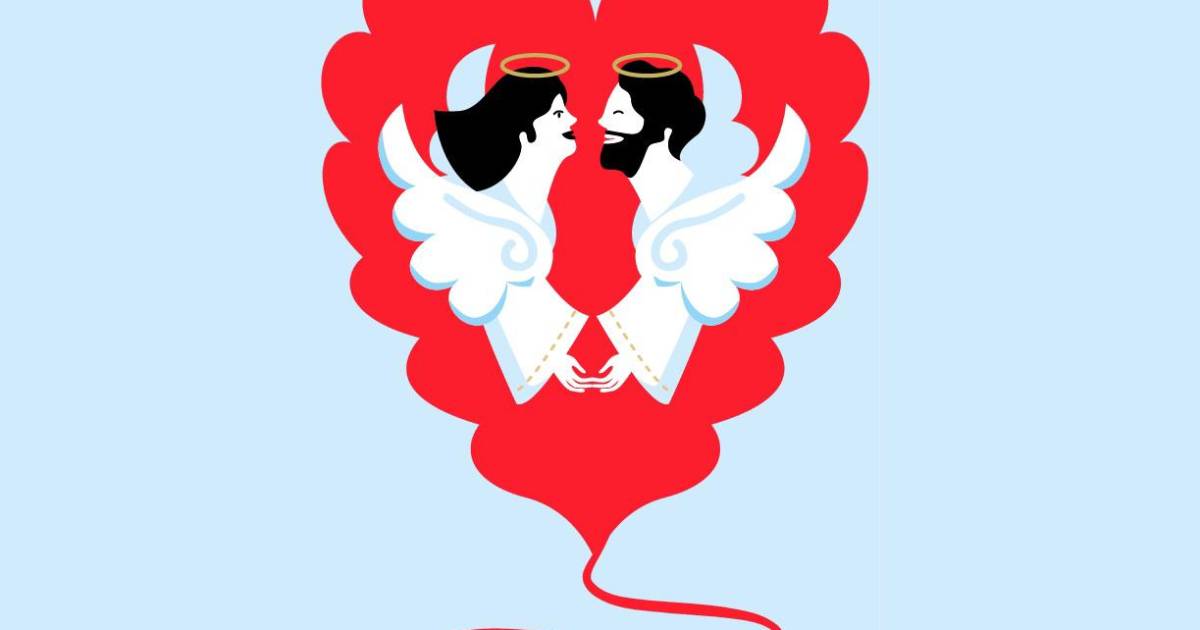 Un ángel se encontró en una nube con una angelita. Ambos lucían sus respectivas aureolas y sus alas, y los dos portaban sendas liras, según la tradicional imagen