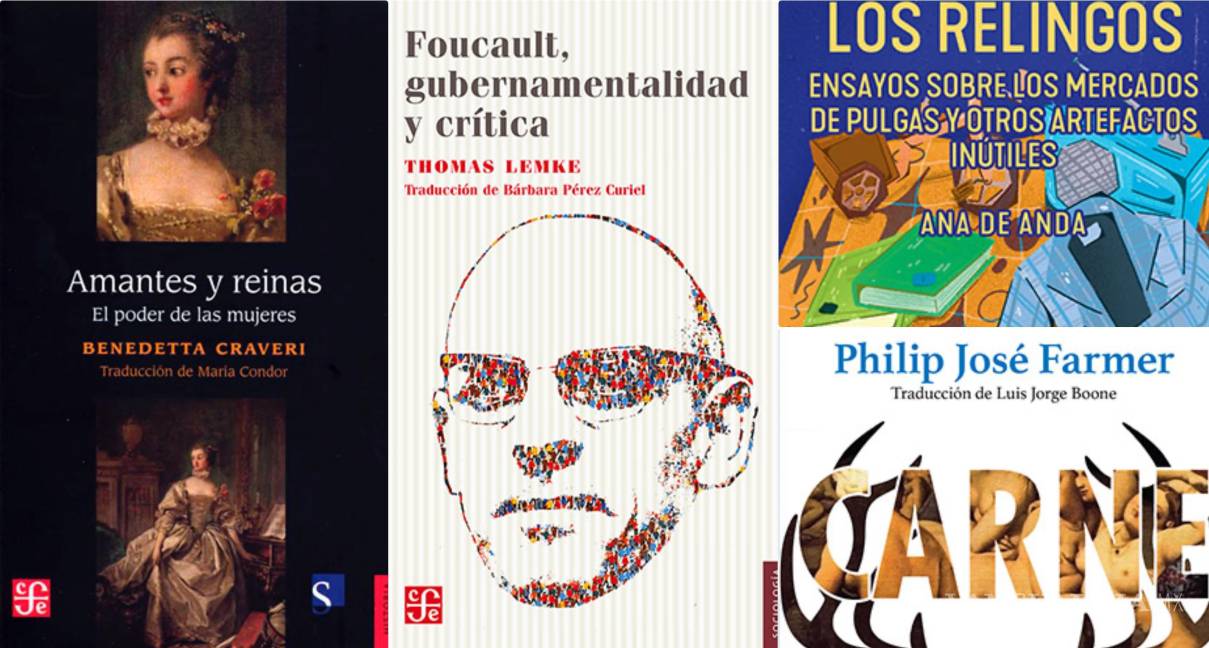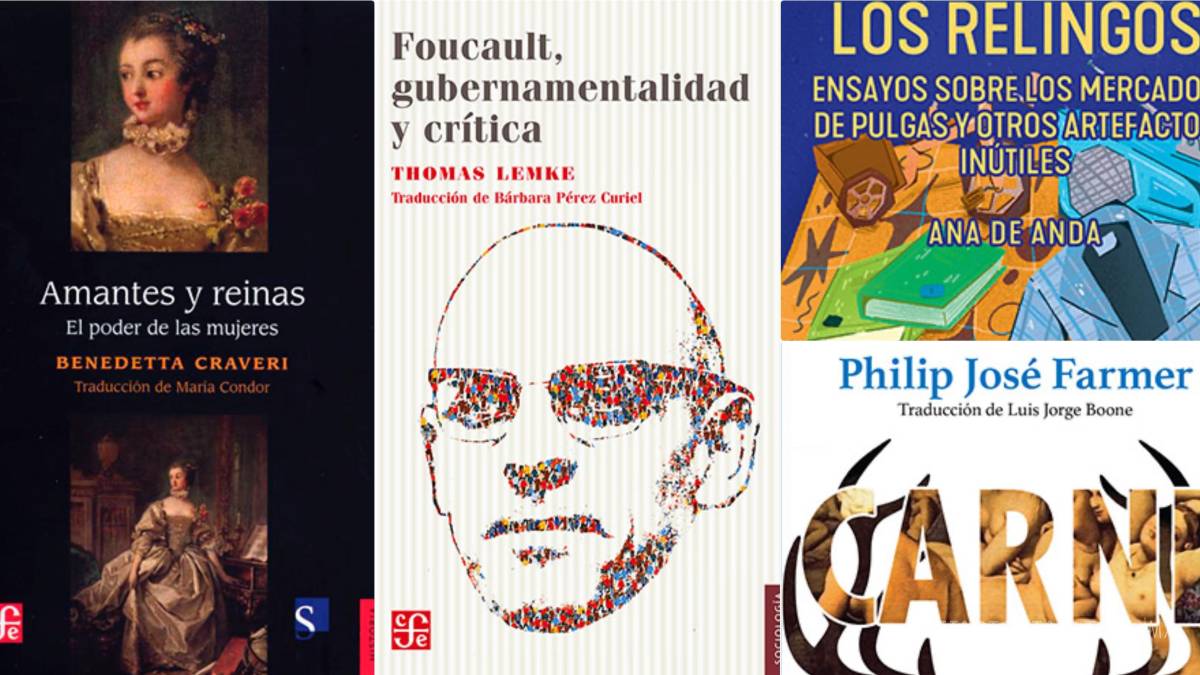 Entre los libros que sta semana te recomendamos leer están; “Amantes y reinas. El poder de las mujeres” de Benedetta Craveri, “Foucault, gubernamentalidad y crítica” de Thomas Lemke y “Carne” de Philip José Farmer