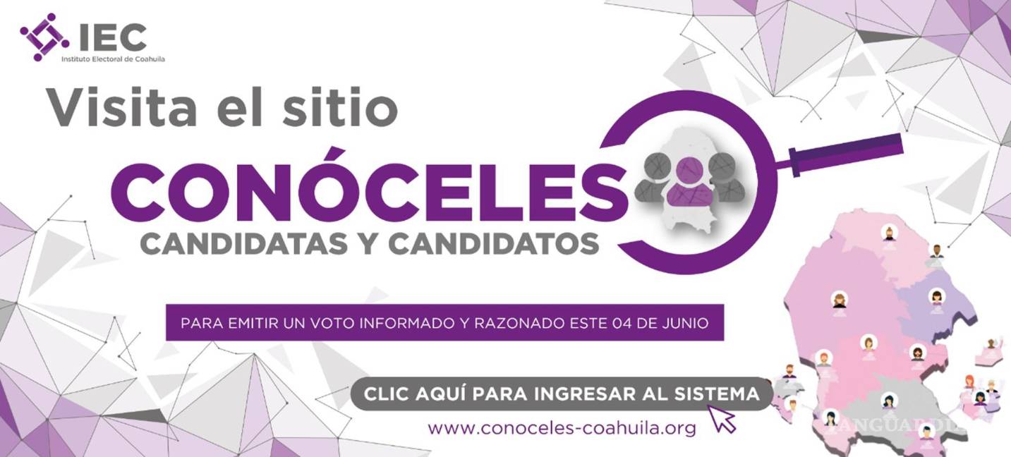 Para poner a disposición de la ciudadanía la información señalada −además de otra, relativa a su currículo y propuestas, por ejemplo− se habilita una plataforma en la página web del Instituto Electoral de Coahuila (IEC). Para el actual proceso, el sitio puede localizarse con el nombre “Candidatas y candidatos, conóceles”.