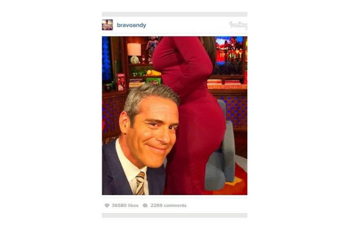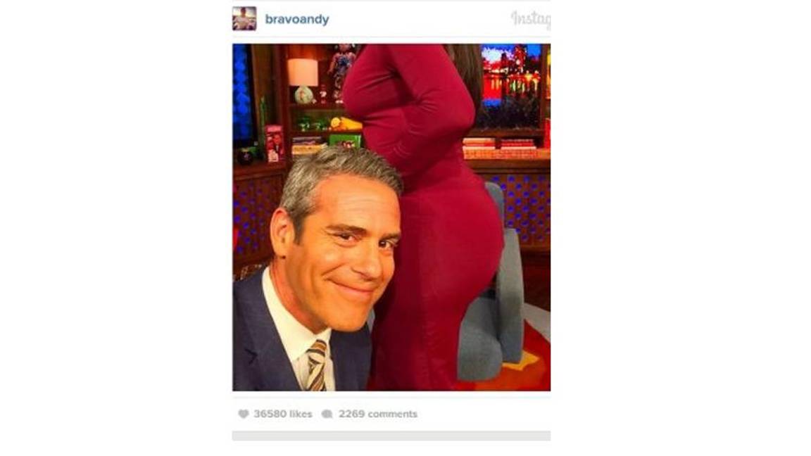 El momento de la noche llegó cuando el presentador le pidió Kim Kardashian fotografiarse junto a la parte más llamativa de la mujer : su trasero, al que definió como "el trasero más codiciado de la cultura pop". Andy Cohen se puso al lado de la mujer y tomó la instantánea con cara sonriente y acto seguido la subió a Instagram.