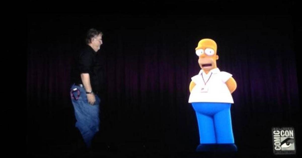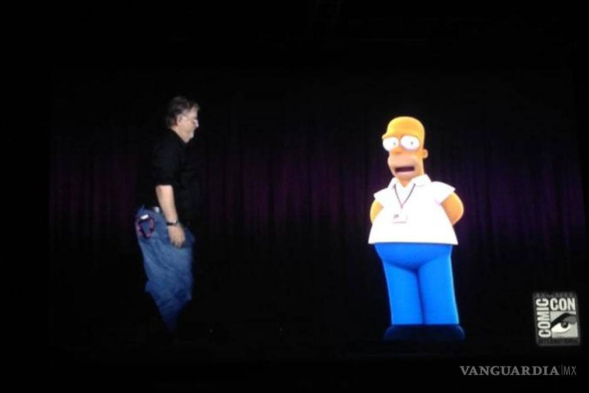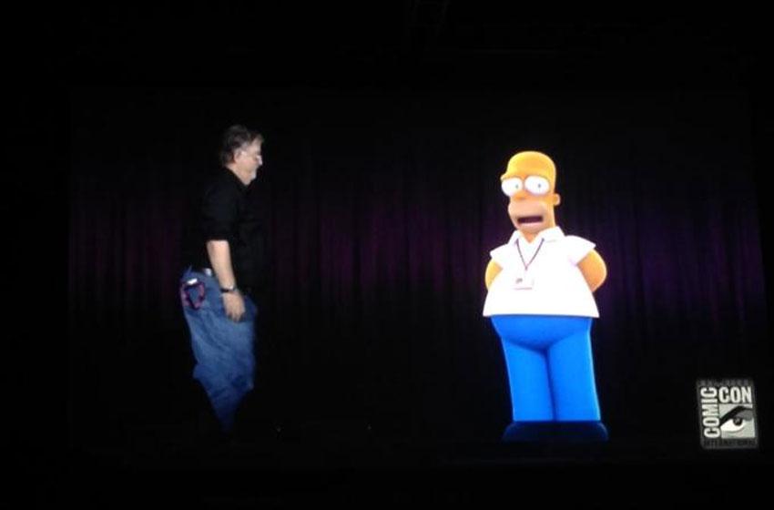 En forma de un holograma, el padre de la popular y exitosa familia de Springfield se subió al escenario donde estaban varios de los productores de la serie, y conversó con el creador Matt Groening.