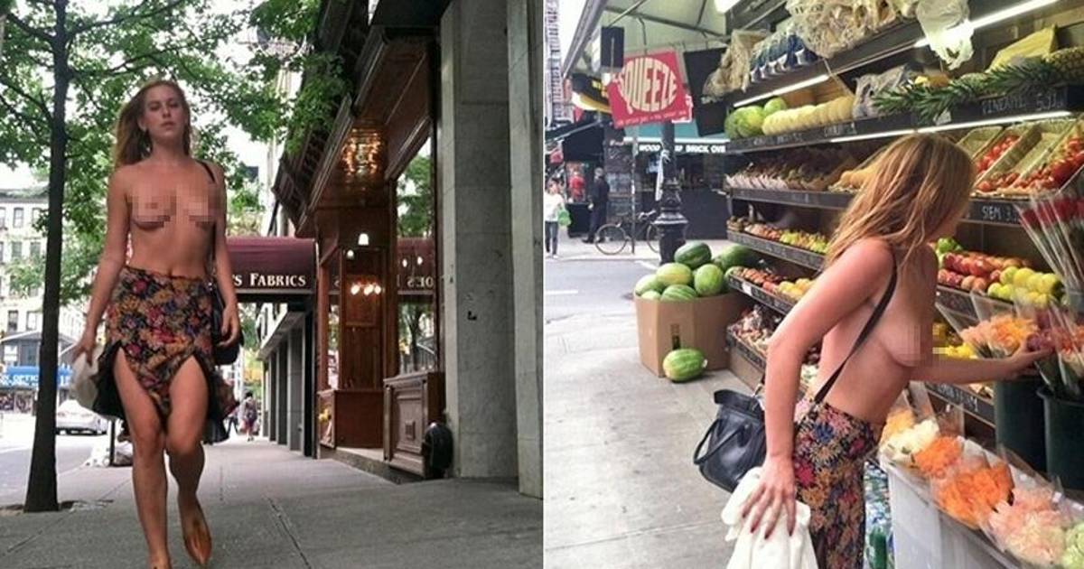 La joven de 22 años quiso comenzar una protesta contra la política de Instagram sobre la censura. Es por eso que subió a su cuenta de Twitter dos fotos de ella caminando por las calles de Nueva York con una falda floreada y el torso completamente desnudo.