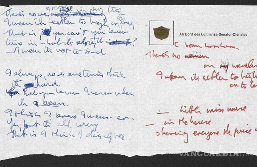 Londres, Inglaterra.- Manuscritos de éxitos de los Beatles como "Strawberry Fields Forever" o "She Said She Said", que salieron del puño y letra de John Lennon, fueron donados hoy a la Biblioteca Británica (British Library).