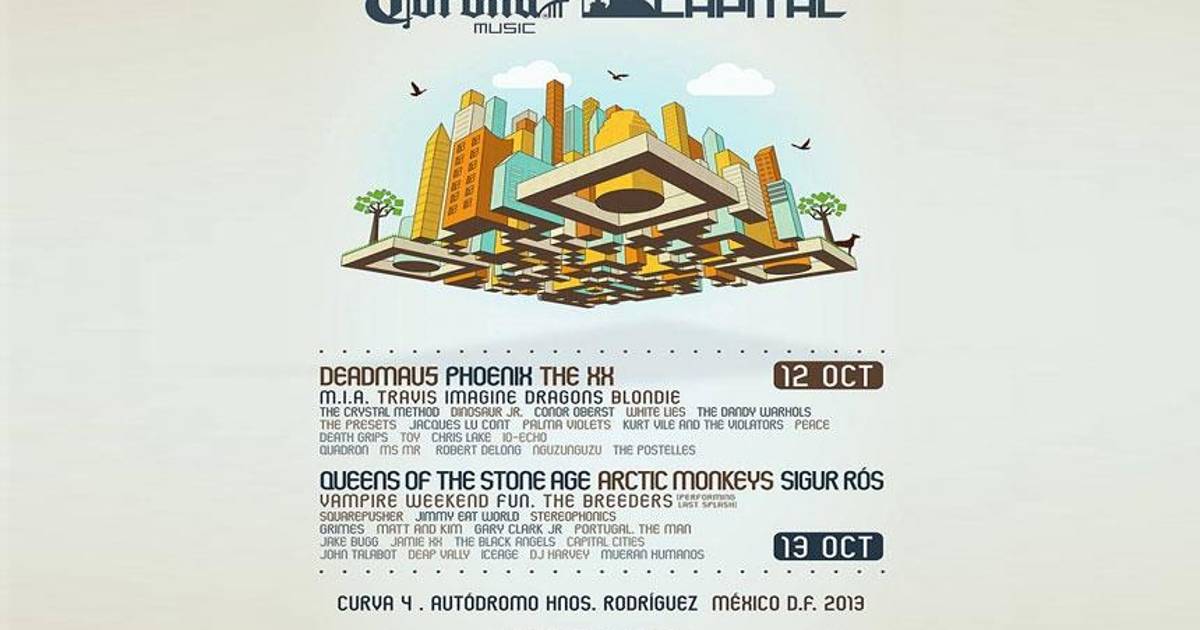 CIUDAD DE MÉXICO.- Queens of The Stone Age, The XX, Phoenix, Arctic Monkeys y Sigur Rós serán las bandas estelares del Corona Capital 2013, que tendrá lugar el 12 y 13 de octubre próximo en la curva 4 del Autódromo Hermanos Rodríguez de la Ciudad de México.