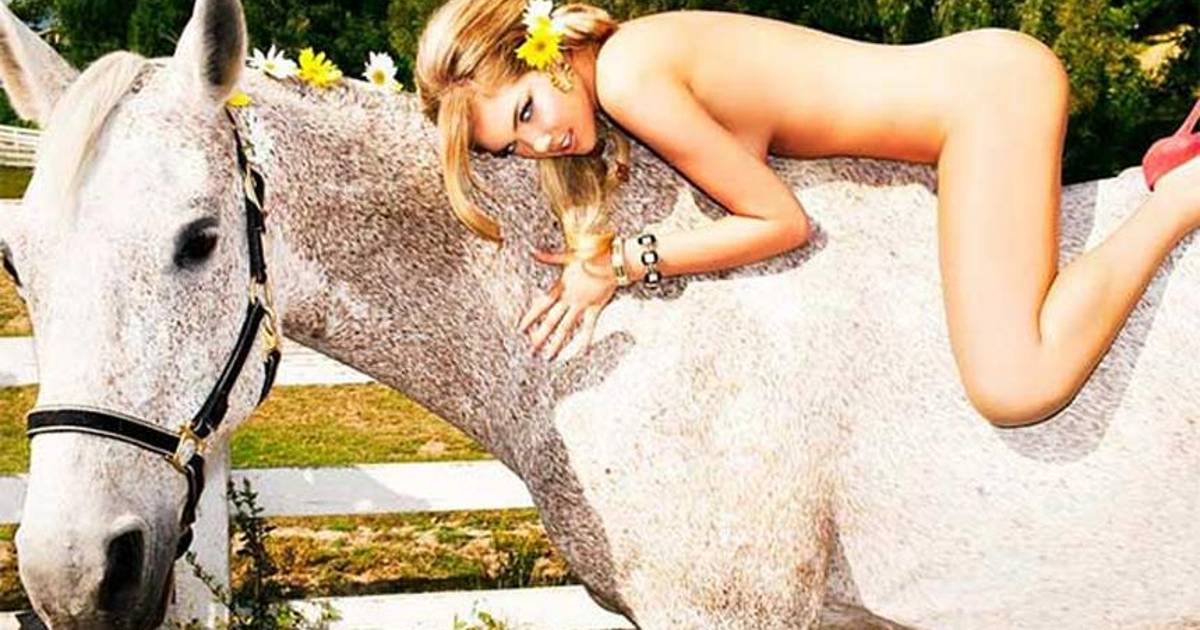 Se difundió un video de la rubia modelo estadunidense de 20 años en medio de una producción fotográfica arriba de un blanco equino, en dónde intentaba cubrir sus pechos, hasta que finalmente optó por dejarlos al descubierto.