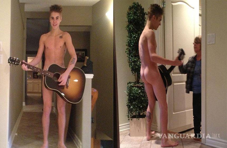 El cantante canadiense de 19 años aparece en una imagen difundida en internet sin ropa, aunque cubriendo estratégicamente sus partes íntimas con una guitarra.