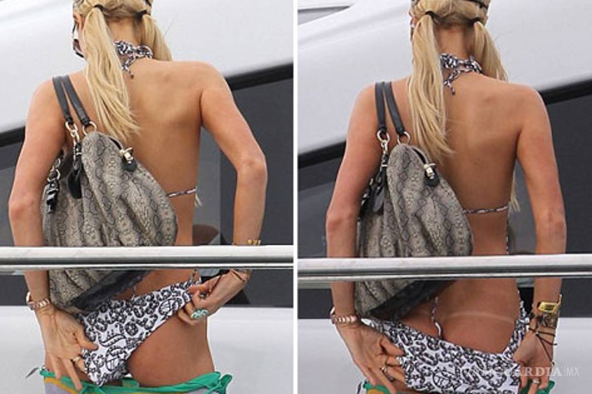 La parte inferior de su bikini se había corrido, así que Paris intentó acomodarlo, sin darse cuenta que dejó al descubierto todo su trasero y, para alegría de algunos, una delgadísima marca en la piel.