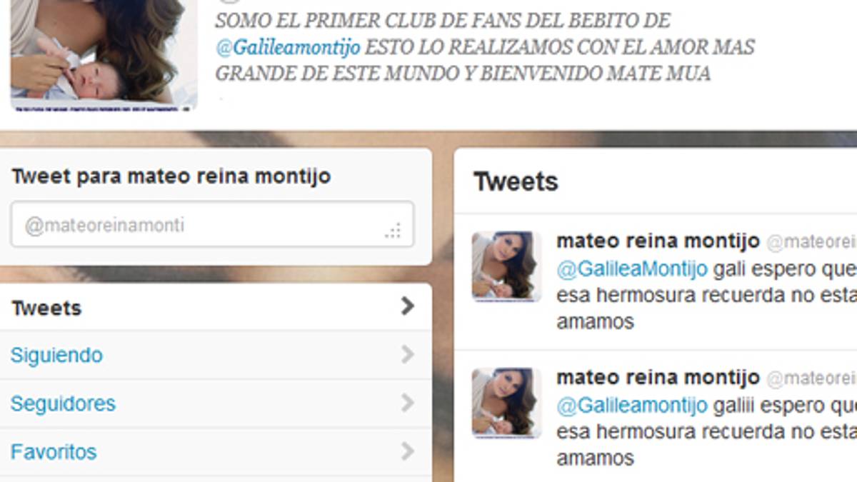 "SOMO EL PRIMER CLUB DE FANS DEL BEBITO DE@Galileamontijo ESTO LO REALIZAMOS CON EL AMOR MAS GRANDE DE ESTE MUNDO Y BIENVENIDO MATE MUA" (sic), publicaron quienes hicieron la cuenta, en la biografía del perfil.