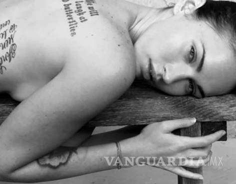 En la otra foto la protagonista de Jennifer"s Body aparece en una cama cubierta por una sábana negra con el modelo desnudo enfrente.