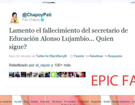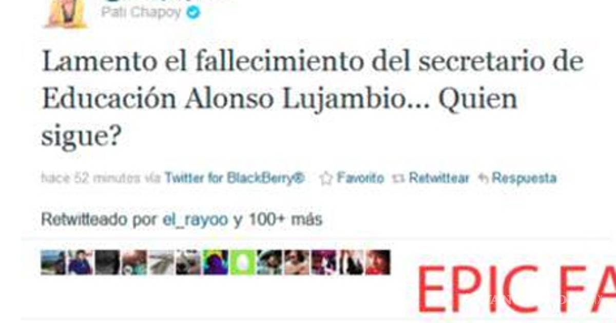 La periodista de espectáculos confundió la muerte del Secretario de Gobernación, Francisco Blake Mora y difundió en su cuenta que había fallecido el Secretario de Educación, Alonso Lujambio.