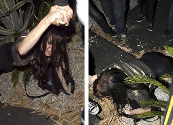 La actriz y cantante norteamericana Lindsay Lohan, de 23 años, protagonizó una bochornosa caída en la puerta de un centro nocturno de Hollywood.