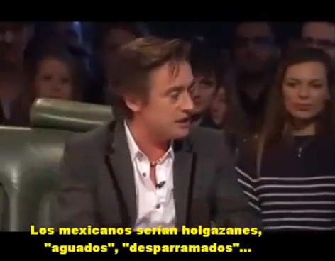 "Es interesante porque los mexicanos tampoco pueden cocinar ¿o sí?, todo parece ser vomitada con queso encima", comentó James May, quien realizó este comentario después de que Mark Hammond se encargara de dar su punto de vista sobre la forma de ser de los mexicanos: