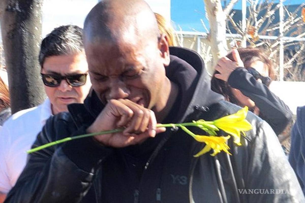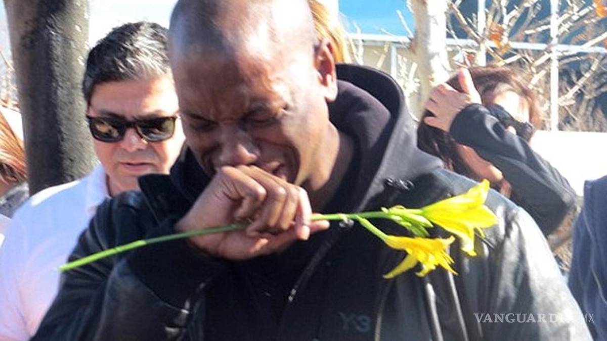 Gibson se abrió paso entre la gente y no pudo contener su dolor, llorando frente a los presentes mientras dejaba una flor amarilla sobre el improvisado memorial.