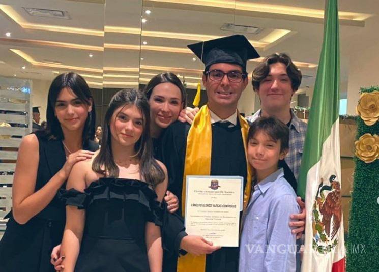 Ernesto D’Alessio concluyó de forma exitosa sus estudios en Ciencias Jurídicas con acentuación en Seguridad Nacional y para este momento tan importante en su vida estuvo acompañado de su familia y de su mamá Lupita D’Alessio vía videollamada.