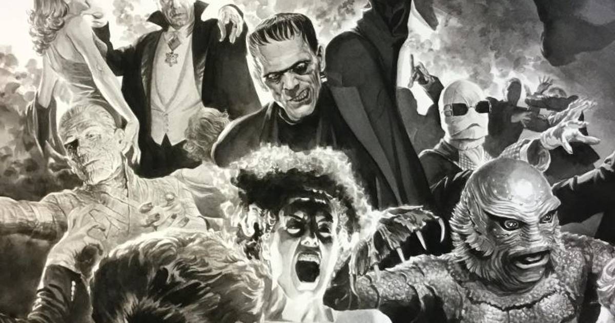 Películas clásicas de blanco y negro como Frankenstein, Dracula, The Mummy y The Wolf Man han vuelto a aparecer en el arte del dibujante Alex Ross en una serie de imágenes que el artista reveló para revelar en la San Diego Comic-Con del próximo año.