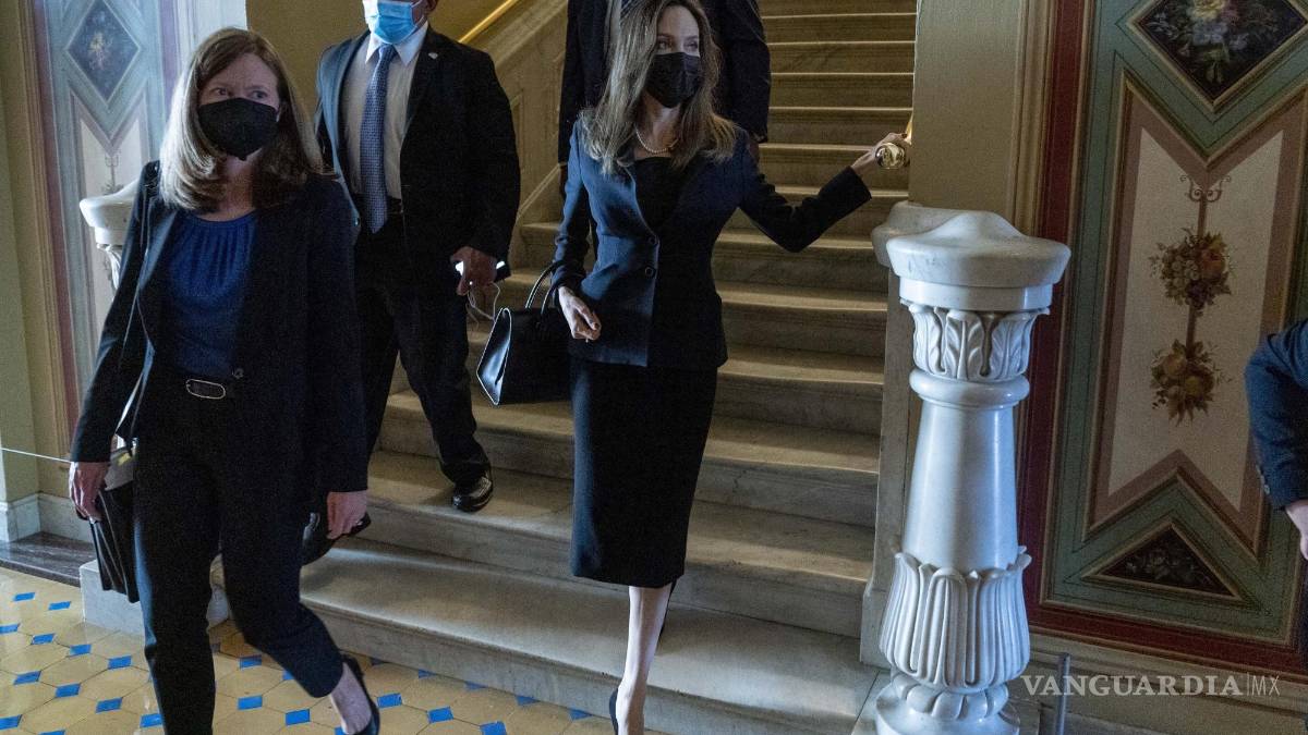 En las imágenes se ve al senador estrechando la mano de Jolie y conversando con ella en un sofá azul de su oficina en el Senado.