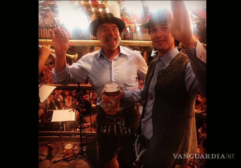 El famoso dúo decidió festejar la ocasión en el Oktoberfest. Fue un viaje largo para Patrick, pero no tanto para Arnold. El exgobernador estuvo en la cercana Budapest, en el rodaje de lo que será el Terminator 6.