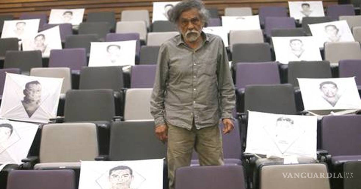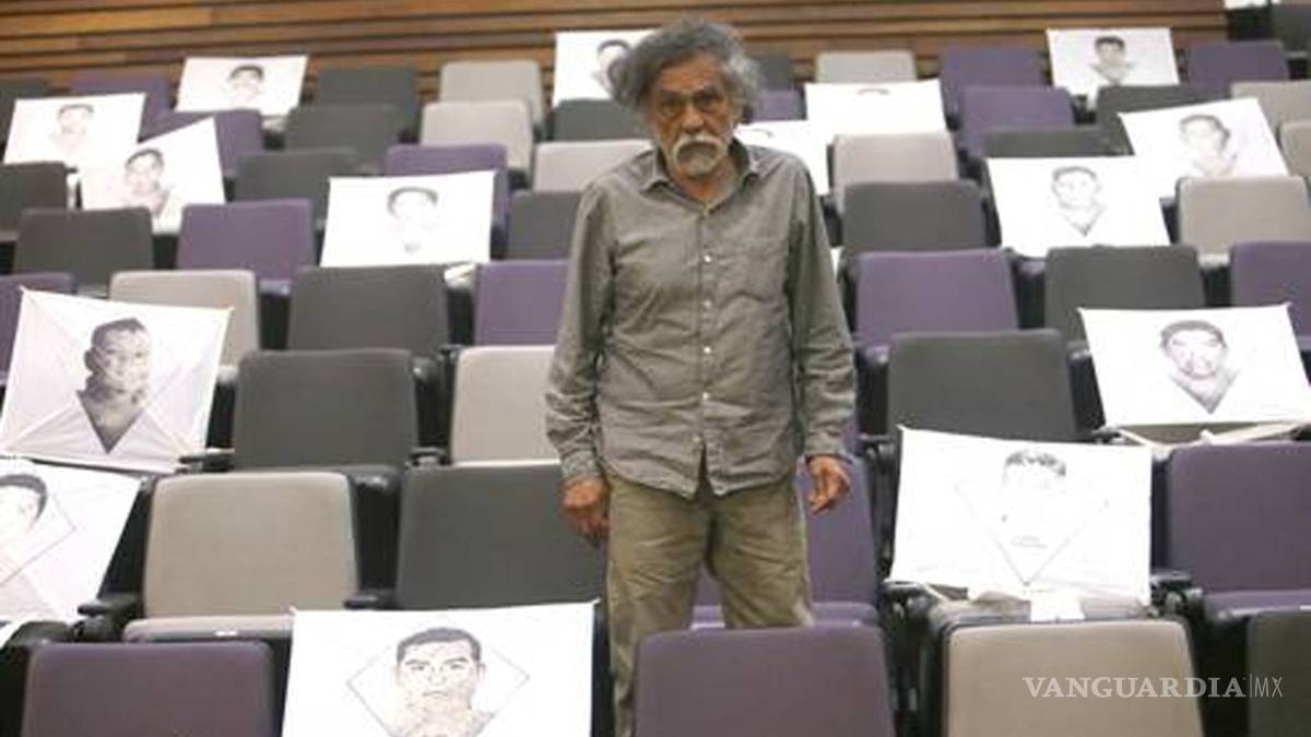 El pintor Francisco Toledo, acompañado por algunos de los padres y familiares de los normalistas desaparecidos, inauguró este jueves la muestra integrada por los tres trabajos ganadores y una selección de 20 participantes del concurso que convocó el Instituto de Artes Gráficas de Oaxaca (IAGO) en el contexto de su primera Bienal de Cartel.