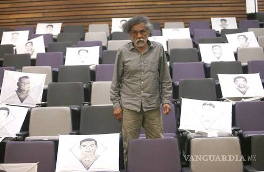 En el techo del vestíbulo del recinto se colocaron 43 papalotes estampados con los rostros de los normalistas, realizados por Toledo, que recuerdan al público "la presencia en nuestra conciencia de los jóvenes y su ausencia en la realidad nacional", añadió Linda Atach.