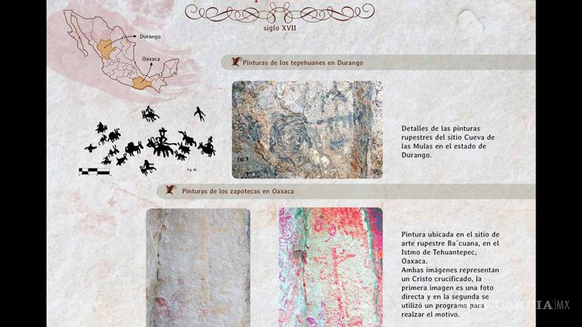 Además, estas pinturas guardan un diálogo entre las antiguas expresiones prehispánicas y las nuevas expresiones coloniales, no se superpone la una a la otra, se mezclan con el fin de armonizarlas. Aunque en los tepehuanos no hay un tradición muy clara de arte rupestre previo a la Conquista, en la zapoteca sí y hemos observado que sí hay un diálogo entre lo antiguo y lo nuevo pero con el fin de armonizar expresiones, incluso podemos darnos una idea de cómo fueron los procesos de conquista y evangelización explicó el especialista en entrevista para la Academia Mexicana de Ciencias.