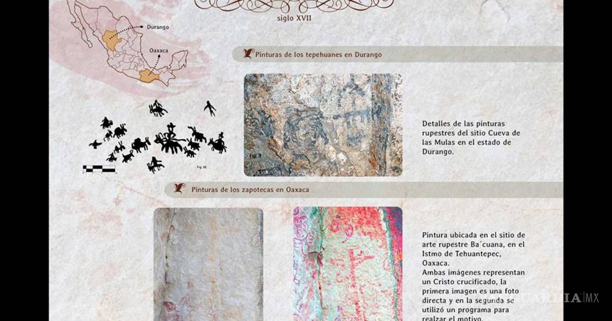 Científicos analizan pinturas rupestres encontradas en el estado de Durango que corresponden al siglo XVII, en las que los indígenas plasmaron libremente su visión de la Conquista