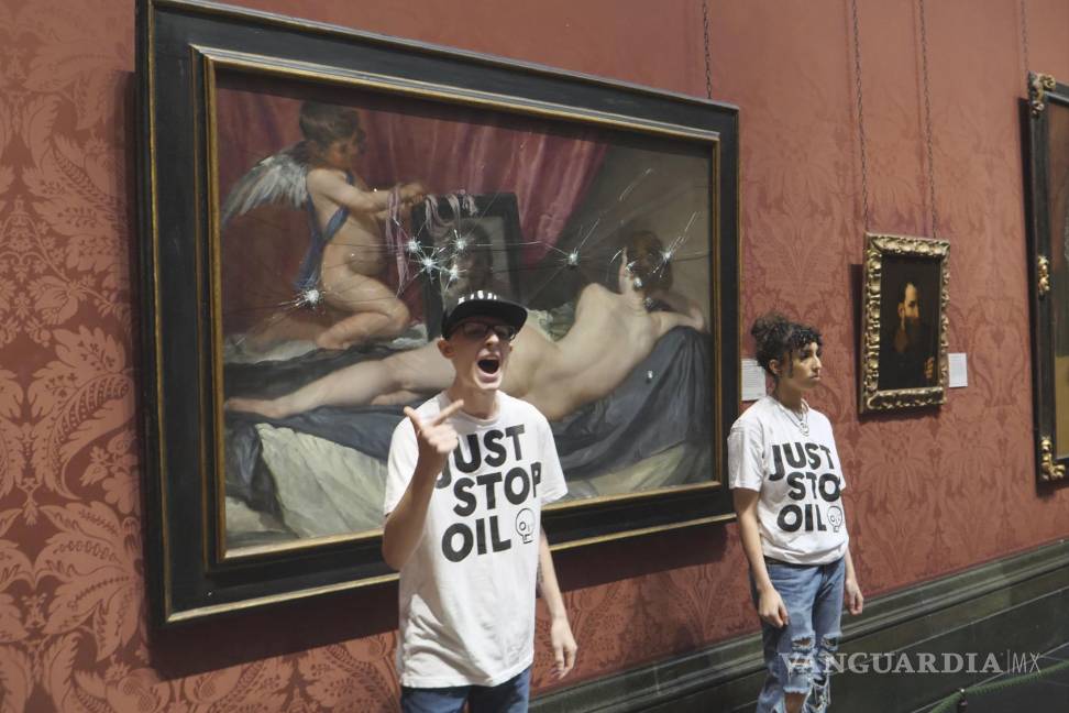 Dos ecologistas del grupo “Just Stop Oil” fueron arrestados este lunes tras romper el cristal que cubría una pintura de Diego Velázquez en la National Gallery de Londres, informó la Policía Metropolitana de esta capital (Met, en inglés).