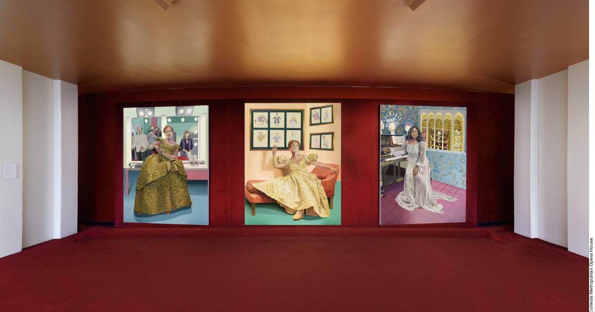 Ahora en exhibición en la galería de la Met, “The Three Divas of Traviata” presenta los retratos individuales de las tres sopranos llevados al óleo, y un díptico de las personas que trabajan detrás del escenario para lograr que la ópera suceda.