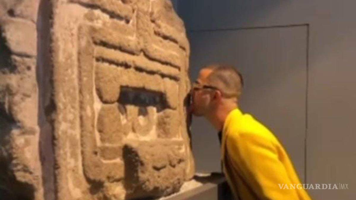 Artista besa y lame piezas arqueológicas del Museo Nacional de Antropología